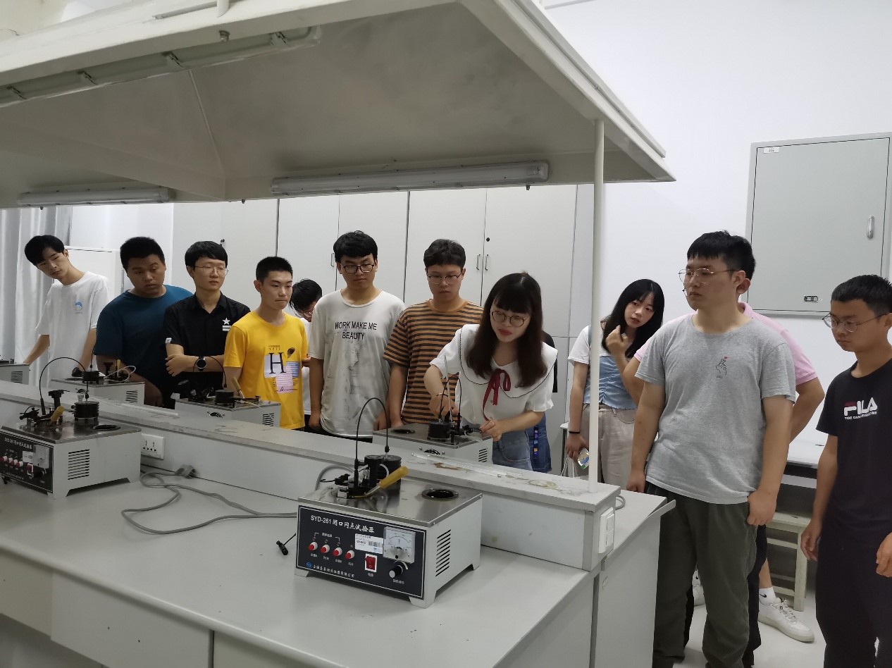 下午为参观实验室活动,考虑到人员数量,参观分为六组进行,每组由一位同学带领对九个实验室进行参观学习,仪器涉及全自动实验反应量热仪、傅立叶红外光谱仪、差示扫描量热仪、闪点仪、 20 L球形爆炸测试装置等。每个实验室的讲解员对仪器的用途、原理、参数等进行了简介。参观现场氛围活跃,同学们不时提出疑问、互相讨论,同时也惊叹仪器设备的先进。