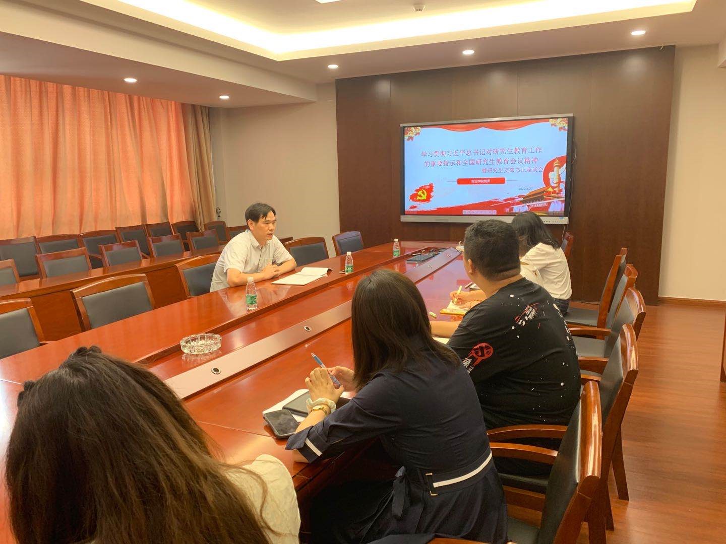 安全公司党委书记喻源领学习近平总书记对研究生教育工作的重要指示及全国研究生教育会议精神,喻书记还就研究生自我教育、自我管理、自我服务以及党员示范引领作用发挥等指出了具体方向。三位老师分别结合如何更好的规范研究生支部日常工作、本研一体化建设和支部工作创新性提升等提出了自己的想法。研究生支部书记认真学习领会会议精神,并结合具体工作积极交流发言。
