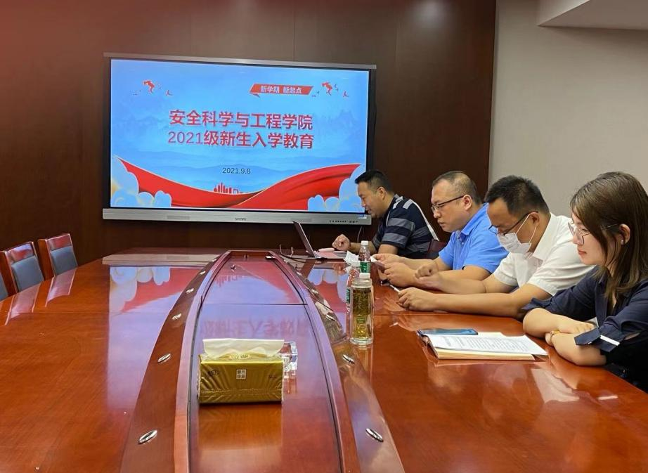 2021年9月8日上午,安全学院与保卫处联合成立的安全保卫功能型党支部面向安全学院2021级新生在线开展入学教育第一讲。校保卫处副处长徐东,安全学院教授张明广、学办主任王茜参会。安全公司党委副书记王永刚主持会议。