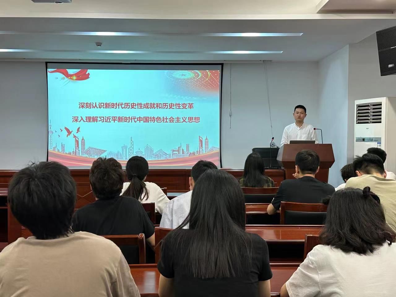 会上,孔德军老师以“深刻认识新时代历史性成就和历史性变革的丰富内涵”为主题讲授专题党课,围绕新时代历史性成就和历史性变革的主要内容进行了阐述讲解,号召青年党员深刻感悟历史性成就和变革,从习近平新时代中国特色社会主义思想中汲取奋进力量,积极结合安全专业实践,切实把思想和行动落实到学习工作中,为奋进新征程凝心聚力。