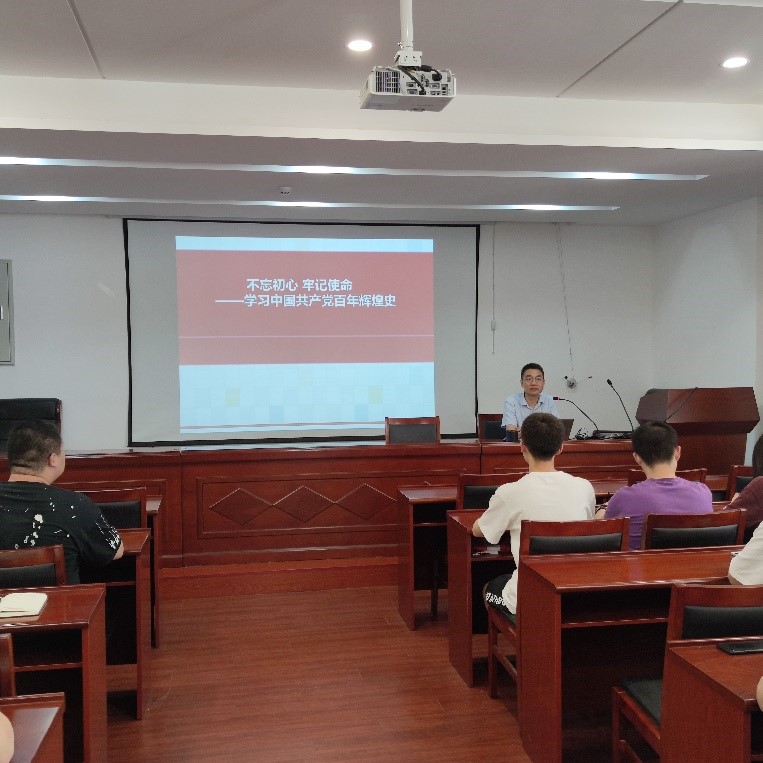 6月30日下午3时,安全学院经理潘勇在厚德楼309会议室为结对共建的两个党支部讲授题为“不忘初心,牢记使命——学习中国共产党百年辉煌史”专题党课,安全学院博士研究生第一党支部、安全工程专业支部的全体党员参加党课培训。