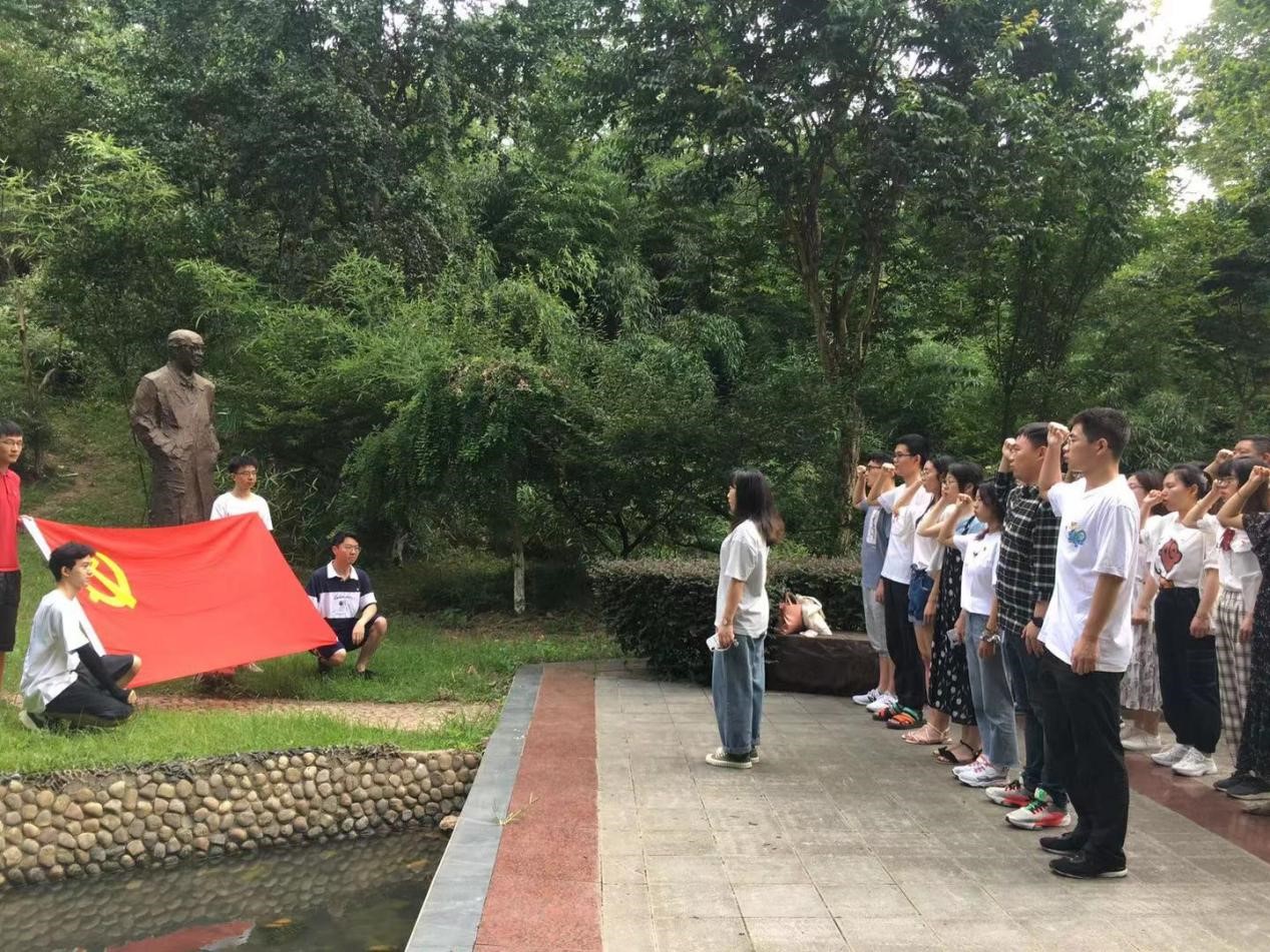 上午8:30,全体党员来到时钧园,新发展员工党员景明举同志向大家介绍时钧院士的先进事迹,全体党员学习感受“时钧精神”。结合近期党史学习教育的成果,党员代表分享入党故事,全体党员一起回顾入党初心畅谈新时代历史使命。党支部书记张晨东同志发言,员工党员要坚定政治信念,牢记党员身份,不断增强党性修养,积极发挥党员先锋模范作用。党支部组织委员郝丽娜带领全体党员在党旗下庄严宣誓。