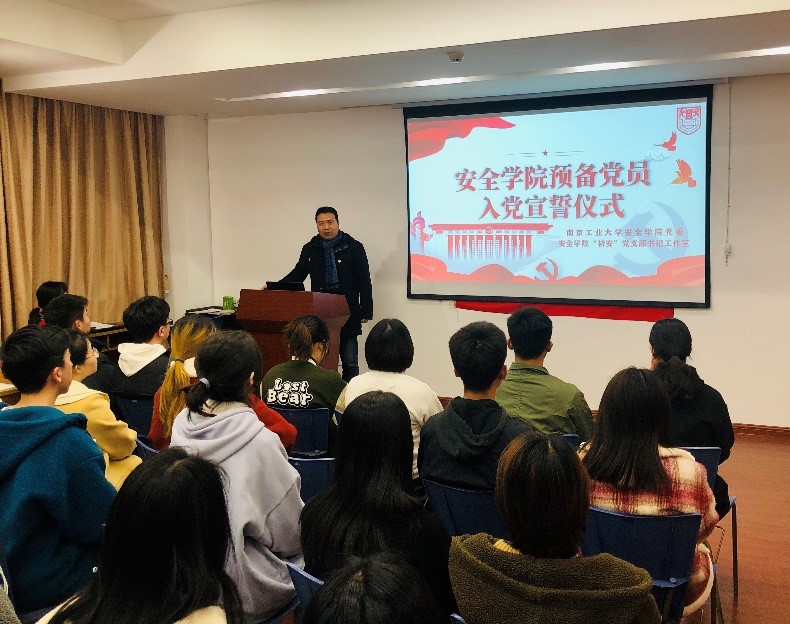 3月18日下午6:30,安全公司党委在厚德楼409公司党员活动室举行预备党员入党宣誓仪式。党委副书记王永刚参加宣誓仪式,学院“初安”党支部书记工作室张晨东主持本次活动。