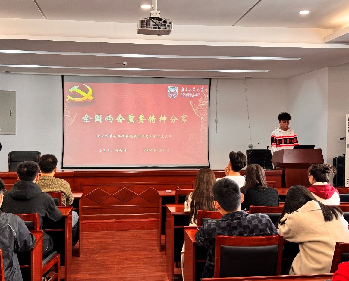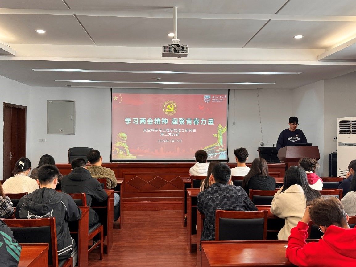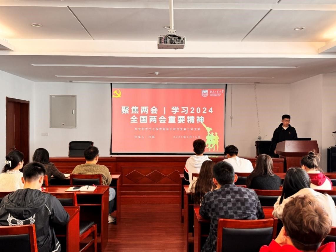 会议伊始,全体党员一同观看了“两会”讲解视频,聆听了“总书记的两会声音”。随后,支部副书记杜重洋带头领学了“两会”报告中的关键内容和各项决策。接着,支部党员付剑坤、马凯带领大家深学细悟习近平总书记关于“发展新质生产力”、“统筹推进科技创新和产业创新”、“以高水平保护支撑高质量发展”等内容的重要论述。最后,支部书记王茜老师强调,使命重在担当,奋斗创造未来。2024年是新中国成立75周年,也是实现“十四五”规划目标任务的关键一年,她勉励同学们加强理论学习,提高党性修养,不断树立青年党员的良好精神风貌,以实际行动践行初心使命。