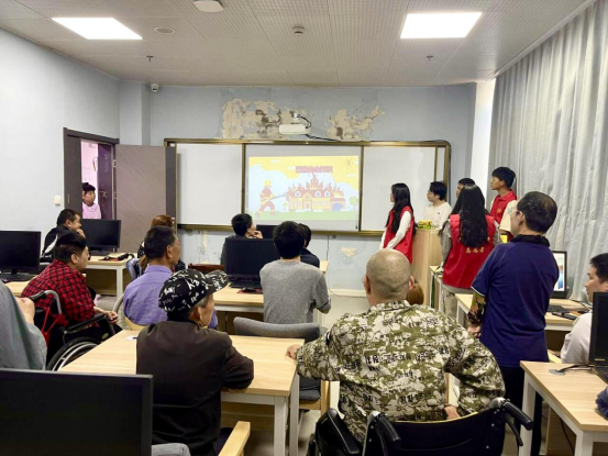 活动过程中,志愿者们通过情景模拟的方式,以通俗易懂的语言向福利院居民宣讲反诈知识,传授识别诈骗手段的方法。随后,志愿者们通过生动的图片演示消防灭火技巧,并向居民普及消防应急知识。最后的游戏问答环节,更是激起在场居民的参与激情,大家积极互动、你问我答,现场氛围推向高潮。