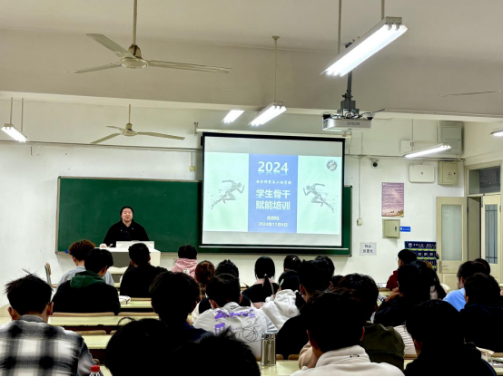 党建领航促成长,朋辈引领共进步。为充分发挥党员先锋模范作用,提升员工党员服务能力,帮助2024级新生开好头、起好步、奠好基,11月6日下午,安全学院本科生党支部党员走进新生年级开展员工骨干赋能培训活动。本次活动由2024级辅导员乐平老师主持,2024级全体助理班主任、班委、辅导员助理参会。