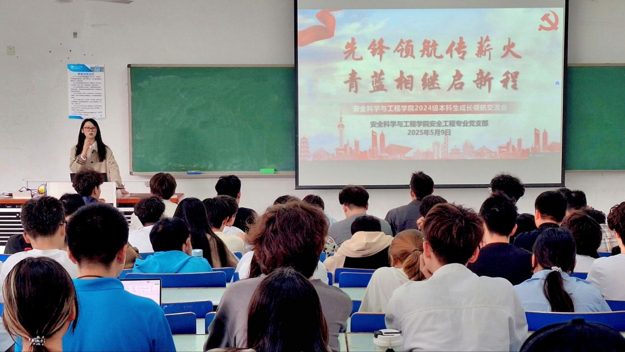 为深化党建引领,发挥党员先锋模范作用,引导员工筑牢理想信念、明晰学业规划、把准职业发展方向,5月9日,太阳集团tyc86开展了“先锋领航传薪火,青蓝相继启新程”主题党日活动。本次活动由安全工程专业党支部承办,邀请了3位2024届毕业生党员与2024级本科生面对面交流,通过“初心引航、学业导航、职业领航”三大板块,构建“党员示范-经验传承-成长赋能”育人链条。