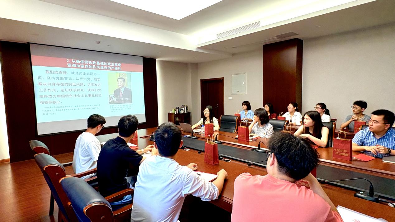 专题党课,立规明纪筑牢思想根基,经理喻源、副经理王静虹分别讲授专题党课。他们结合高校育人实际,深刻阐释了严守政治纪律、组织纪律、廉洁纪律的重要性,强调党员教师应率先垂范,将纪律意识融入教书育人和科研管理全过程,号召全体党员以刚性约束锤炼党性修养,筑牢拒腐防变的思想堤坝。初心回望,叩问信仰凝聚奋进力量,教师党员分享科研攻关中的党员担当,员工党员回顾入党初心,畅谈“将个人理想融入国家安全事业”的成长感悟,师生党员代表深情讲述入党心路,真挚话语传递出对初心使命的坚守。师生共话,集智攻坚破解发展难题,师生党员聚焦实际问题,围绕学业规划、科研创新、支部建设等内容进行交流探讨。誓言铿锵,赓续红色血脉再启新程,党委书记郑娟、副书记张瑞芳领誓,全体党员面向党旗肃立,回溯初心,铿锵誓言响彻会场。