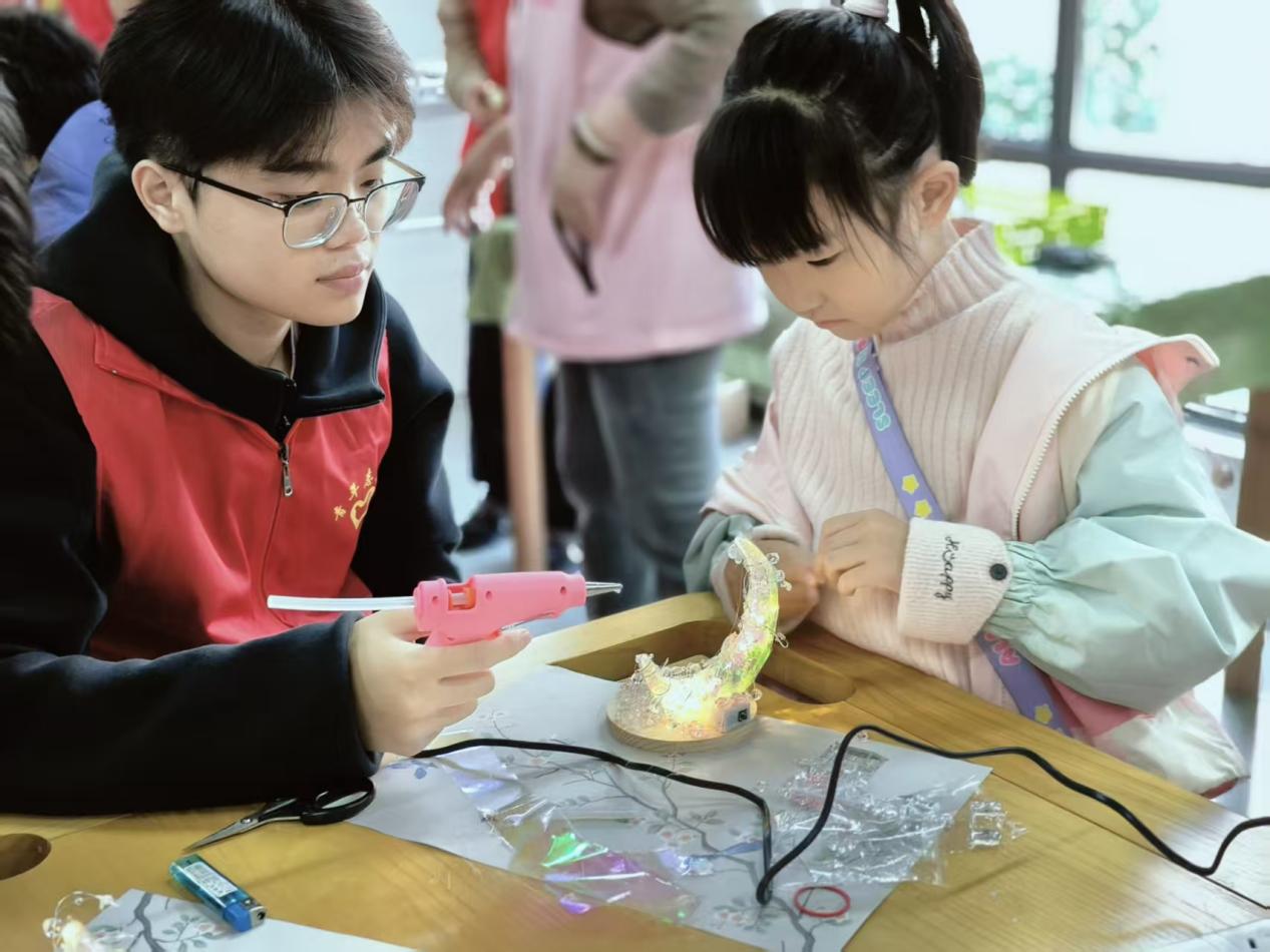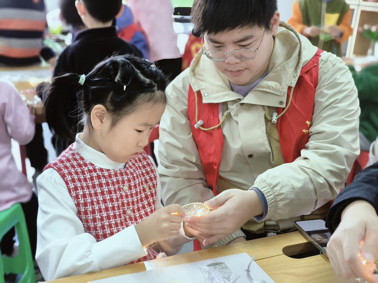 活动聚焦社区儿童成长需求,精心设计了“镜中万象 手作焕新”创意手工环节。员工党团员们耐心细致地引导孩子们发挥想象力,运用彩纸、黏土、贴画等材料,动手装饰独一无二的小镜子及其他手工作品。他们俯身相伴,时而讲解步骤,时而协助操作,在亲切互动中不仅传授了手工技巧,更传递了温暖与关爱。一个个普通的胚体,经过孩子们灵巧的双手,变成了色彩斑斓、充满奇思妙想的艺术品。活动现场气氛热烈,成就感与欢声笑语交织,构成了一幅党团同心、服务社群、关爱未来的温馨画卷。