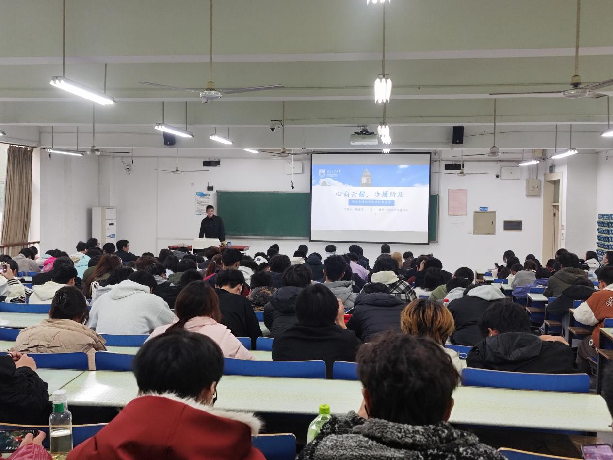 会上,四位同学分享的内容翔实、各有侧重,涵盖保研条件、院校选择等关键问题,为与会同学提供了极具价值的参考。杨涛同学系统梳理了保研的整体流程与关键时间节点,鼓励大家打好专业基础,力求厚积薄发。胡志意同学回顾了自己在保研路上的心路历程,分享了确立目标、调整状态、一步步踏实前行的具体经验。王子悦同学以保研面试为例,传授了本科生在课程答辩、竞赛展示等多种场合下都能适用的面试表达与心态调整通用要领。梅星宇同学详细介绍了本科期间科研经历与竞赛成果在保研中的重要作用,鼓励学弟学妹尽早投身实践,提升综合竞争力。