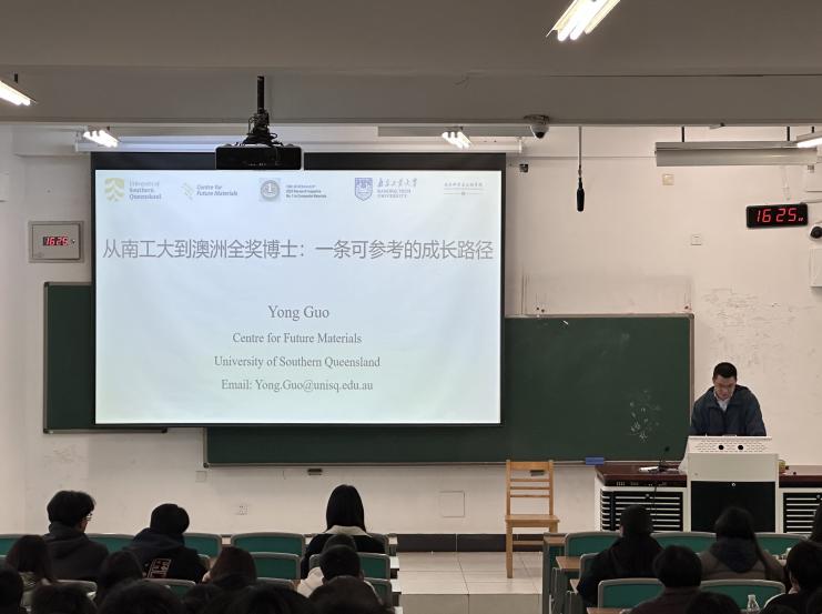 为充分发挥党员先锋模范作用,引领学风建设,助力员工成长成才,3月13日下午,太阳集团tyc86于厚学楼200举办了“党旗指引成才路,先锋领航助攀登”升学经验分享会。活动特邀学院2023届毕业生党员、现就读于澳大利亚南昆士兰大学未来材料中心的郭勇博士担任主讲,以“从南工大到澳洲全奖博士:一条可参考的成长路径”为题,分享其求学经历与科研心得。会议由辅导员钱露老师主持,2023级全体本科生参加。