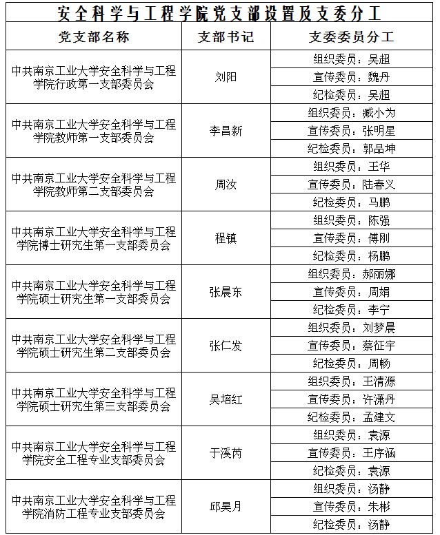 公司党支部设置及支委分工