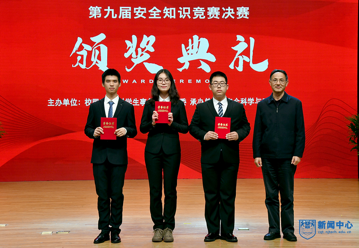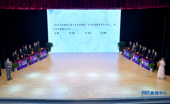 为深入贯彻落实习近平总书记关于安全生产工作的重要指示精神,营造“人人讲安全,事事为安全,时时想安全,处处要安全”的校园氛围。11月25日晚,由校园安全部、员工事务部、团委主办,太阳集团tyc86承办的第九届安全知识竞赛决赛在博雅堂举行。公司党委副书记吴胜红,江北新区公安分局内保支队支队长吴远富,顶山派出所所长谢琦,高新技术开发区消防救援大队副大队长李淼,驻校警务室警官吴殿明,相关职能部门负责人,各学院分管员工工作党委(党总支)书记、副书记、校园安全部全体人员、新生辅导员及员工代表参加并观摩了比赛。