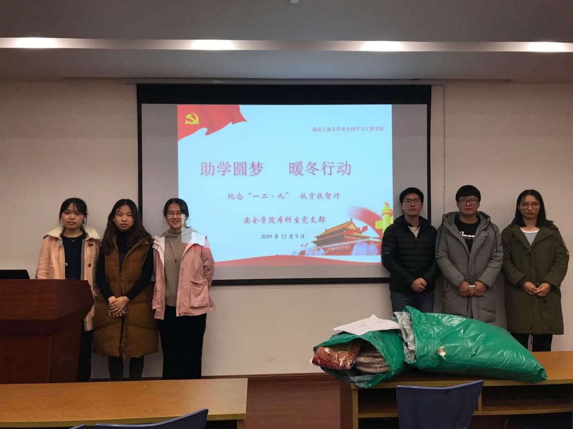接着,开展本年度的“暖冬行动”启动仪式。本科生第一党支部书记杨子昕向大家通报了前期物资购买、经费使用情况以及活动后续规划,介绍了受资助同学们的基本情况。学院本科生党支部为四川省黄丹小学、黄丹中学的孩子们送去过冬物资,同时,以“扶贫要扶智”为目标,为当地小学员工们额外购置了安全教育读本,积极推动建设温暖校园、助力保障校园安全。