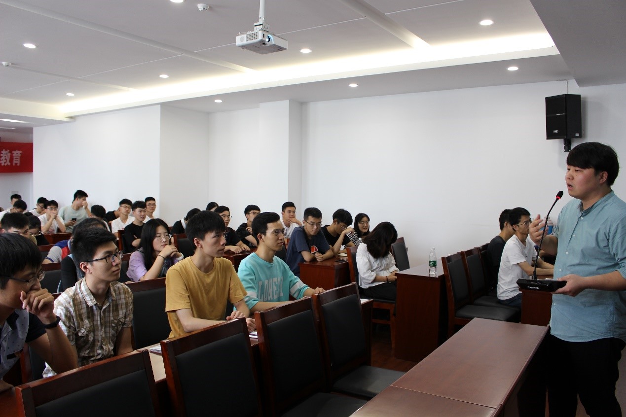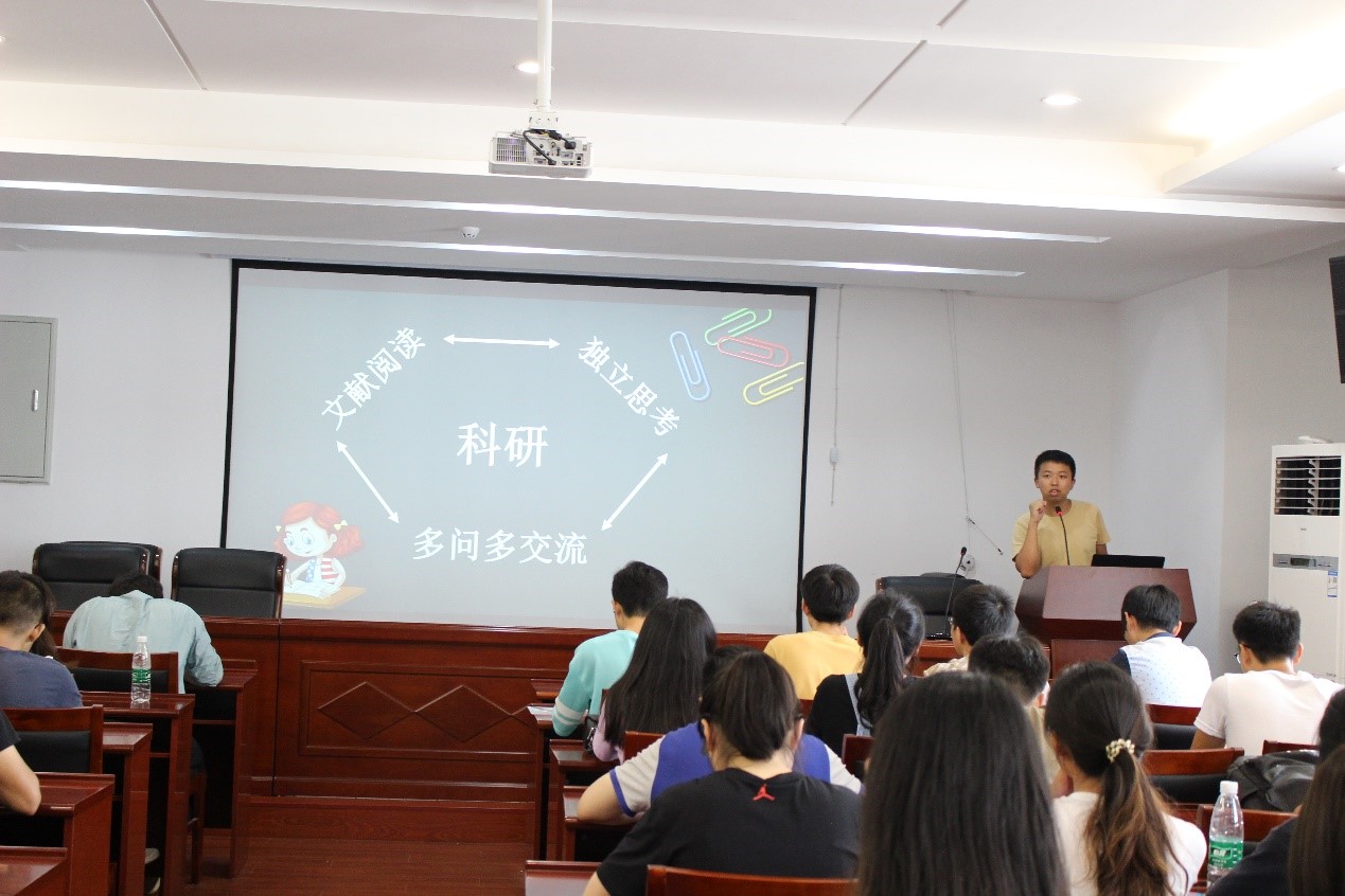 会议伊始,朱峪铖介绍了本次交流活动,希望新生们积极把握机会,能够有所思考,有所收获。随后,18级博士陈治全以自身读研读博的经历,透过阐述“为什么要读研,如何去读研”这两个问题,说明读研的重要性。同时提醒同学们在进行科学研究时,要做到条理清晰、逻辑合理,通过主观判断,远离误区,并要严谨治学,精益求精,切记戒骄戒躁。另外,建议同学们在读研期间能够高度自律,加强体育锻炼,保持良好的心态和身体素质。之后,19级博士郭鑫鑫从“如何进行科学研究”着手,建议同学们树立明确的研究目标,落实研究方案,制定研究计划,确定自己的研究结论。同时强调在进行文献阅读的时候,将阅读过的科技论文和专利进行分类汇总,以便后续查找和重复阅读。接下来,17级研究生王启华就如何进行科学研究的整体思路进行了系统全面的介绍,重点强调独立思考在其中的重要作用,另外对助管的工作内容进行了介绍,包括学院对于研究生的奖助政策的具体实施和班级信息管理等内容。随后,17级党支部书记颜鹏向大家介绍了研究生入党的详细流程,并向新生们说明了入党的一系列要求。