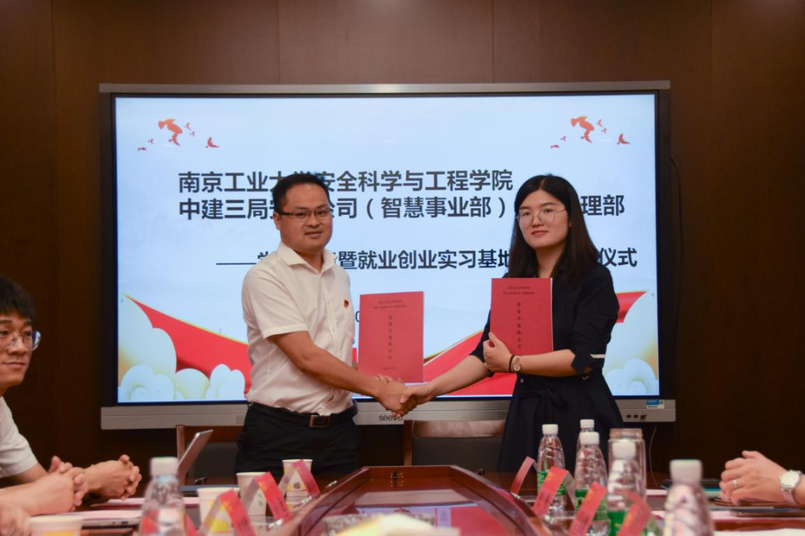 6月30日,安全学院与中建三局安装公司(智慧事业部)华东经理部党建共建暨就业创业实习基地签约授牌仪式在厚德楼311顺利举行。仪式由安全公司党委副书记王永刚主持。