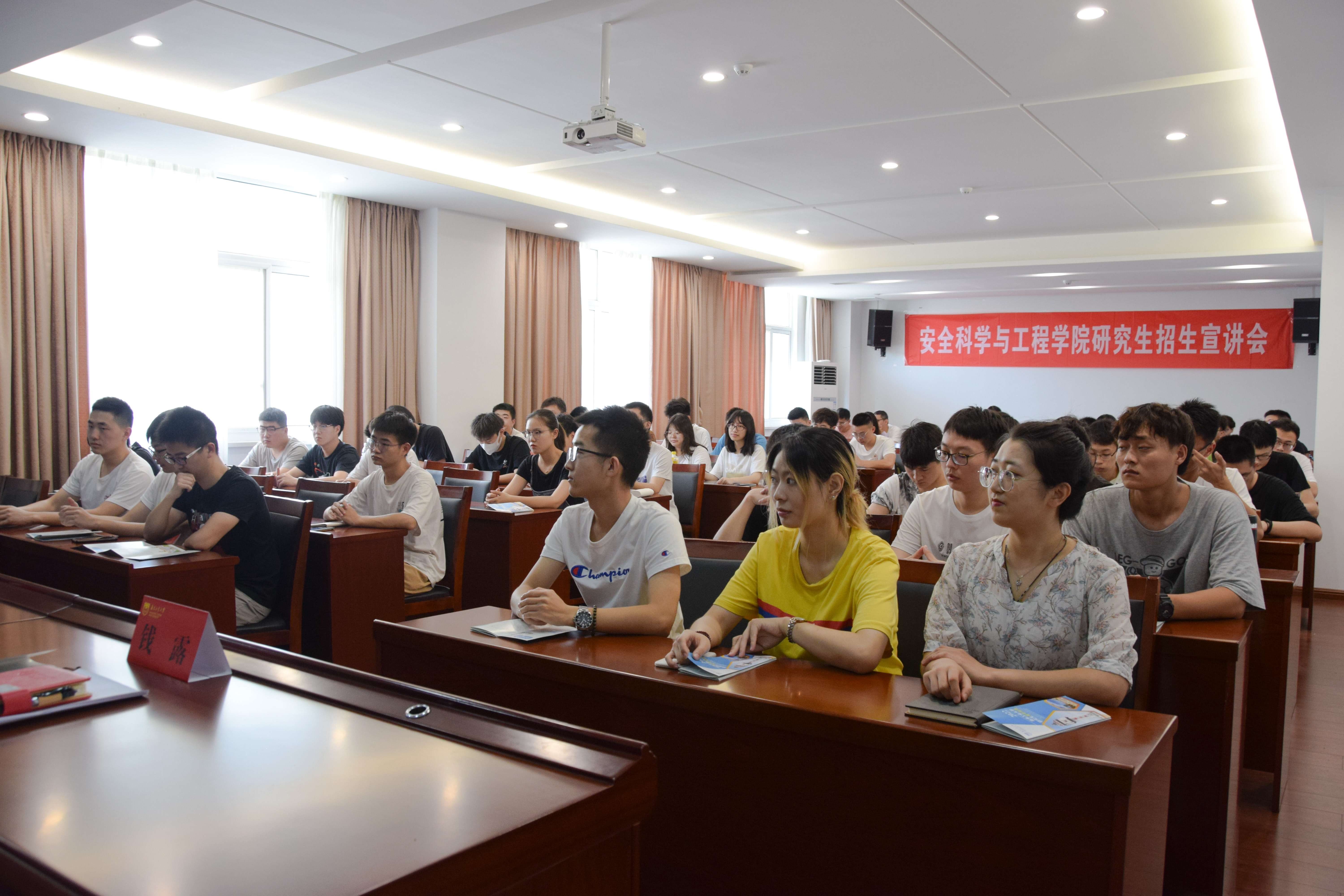 宣讲会由安全学院经理潘勇教授主讲。潘经理根据学院实际情况,分别从学院介绍、学科优势、人才培养和招生信息等方面重点宣传公司综合实力。他指出,学院始终围绕经济社会发展需求,走特色发展之路,经过多年建设,逐步确立了以“工业过程安全”为重点的学科发展目标与方向,积极响应习近平总书记作出的“牢固树立安全发展理念,坚持人民利益至上,始终把安全生产放在首要位置,切实维护人民群众生命财产安全”的指示精神。