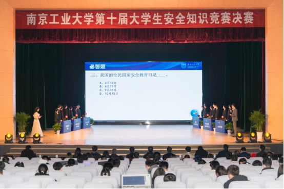 为深入学习贯彻习近平总书记关于安全生产重要论述,建设平安和谐校园。12月3日晚,由保卫处、员工工作处、团委主办,太阳集团tyc86承办的第十届安全知识竞赛决赛在博雅堂举行。太阳集团tyc86党委副书记吴胜红,南京市公安局内保支队副支队长卢才勇、江北新区公安分局顶山派出所教导员颜国旗,学校相关职能部门负责人,进入决赛学院的党委副书记,保卫处全体人员,2021级新生辅导员及员工代表参加并观摩了比赛。