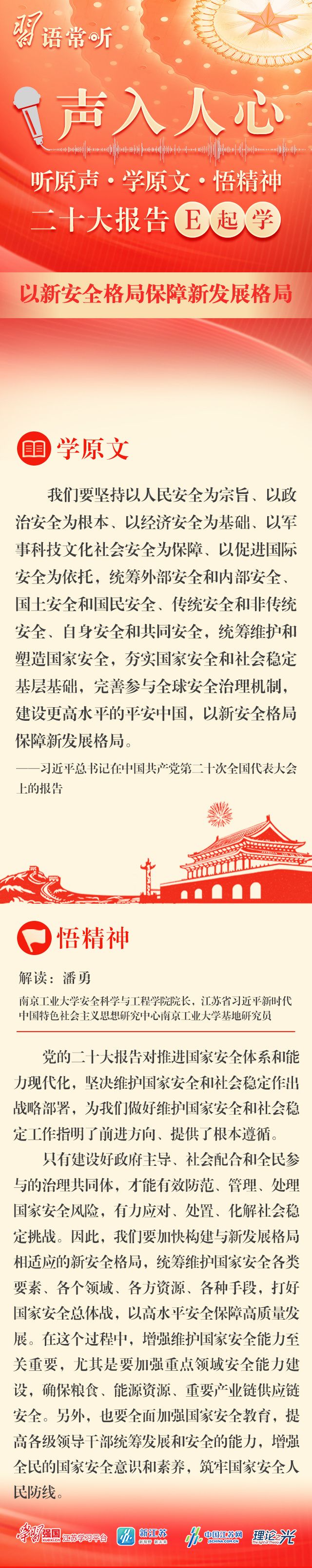 为深入学习宣传贯彻党的二十大精神,更好推动党的二十大精神入脑入心、家喻户晓,中国江苏网品牌栏目《习语常听》特别策划推出100期图文音频融媒产品《声入人心》,与大家一起学习领悟党的二十大报告的丰富内涵和精神实质。