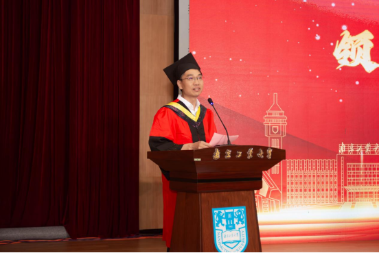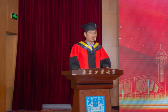 接着,安全学院教师代表韩雪峰叮嘱毕业生们“要保持正直和善良、坚持独立思考和虚心求教”。江苏省优秀毕业生、学院2023届毕业生代表苗雨轩同学表达了对母校的不舍、对老师的感谢和对同窗的不舍,祝愿毕业生们“轻装策马青云路,人生从此驭长风”,勉励学弟学妹们共同成为民族复兴新征程的“护航人”。