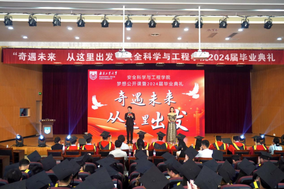 安全学院教师代表钱剑安祝福同学们在未来人生的演练中,“演”得精彩、“练”真功夫、“安”稳如山、一“全”无患。安全学院2024届研究生毕业生代表孙泽鹏、本科生毕业生代表熊欣怡表达了对母校的留恋、对老师的感谢、对同窗的不舍,纷纷表示将牢记“明德 厚学 沉毅 笃行”之校训,初心不改,笃定前行。