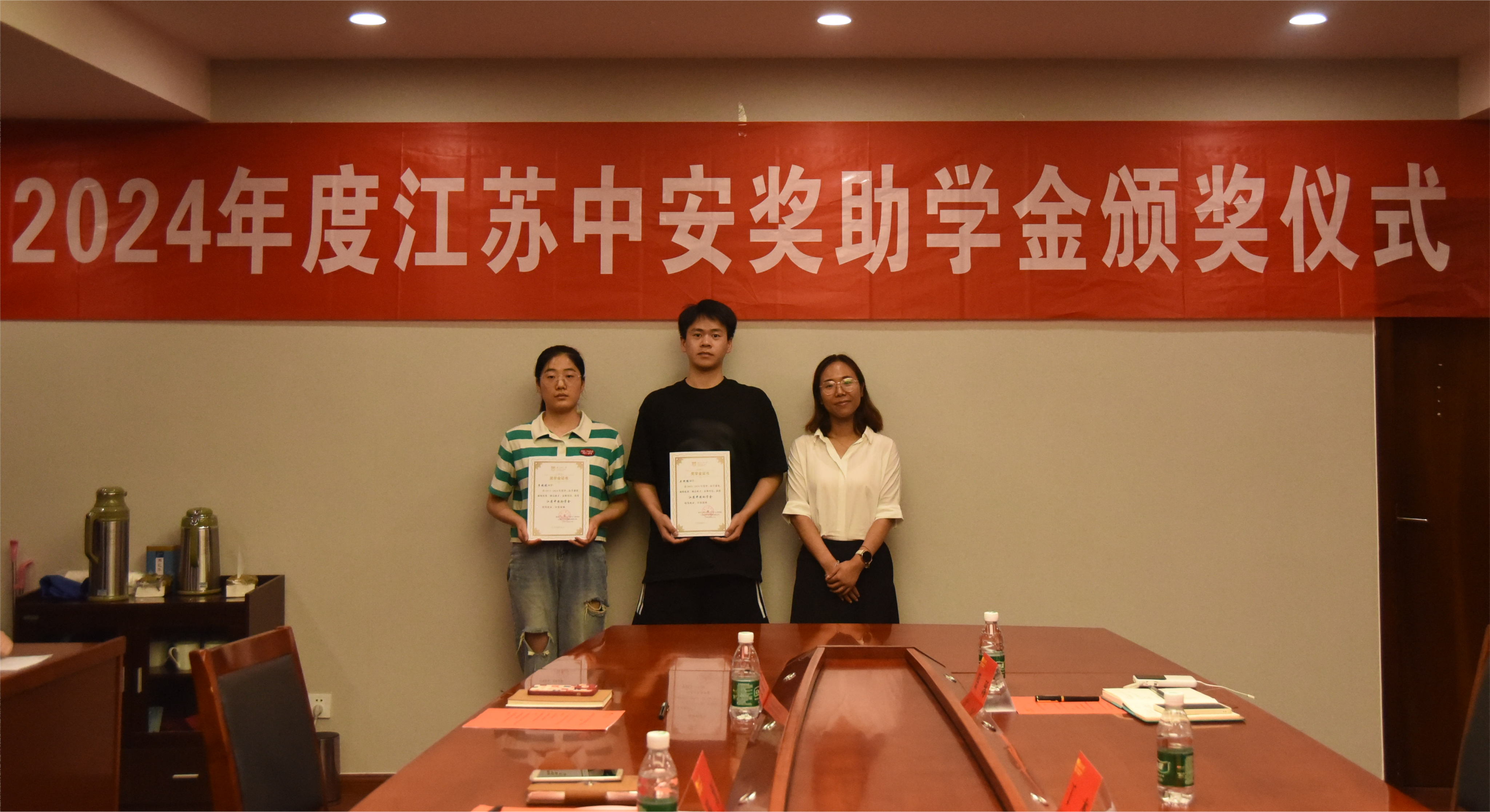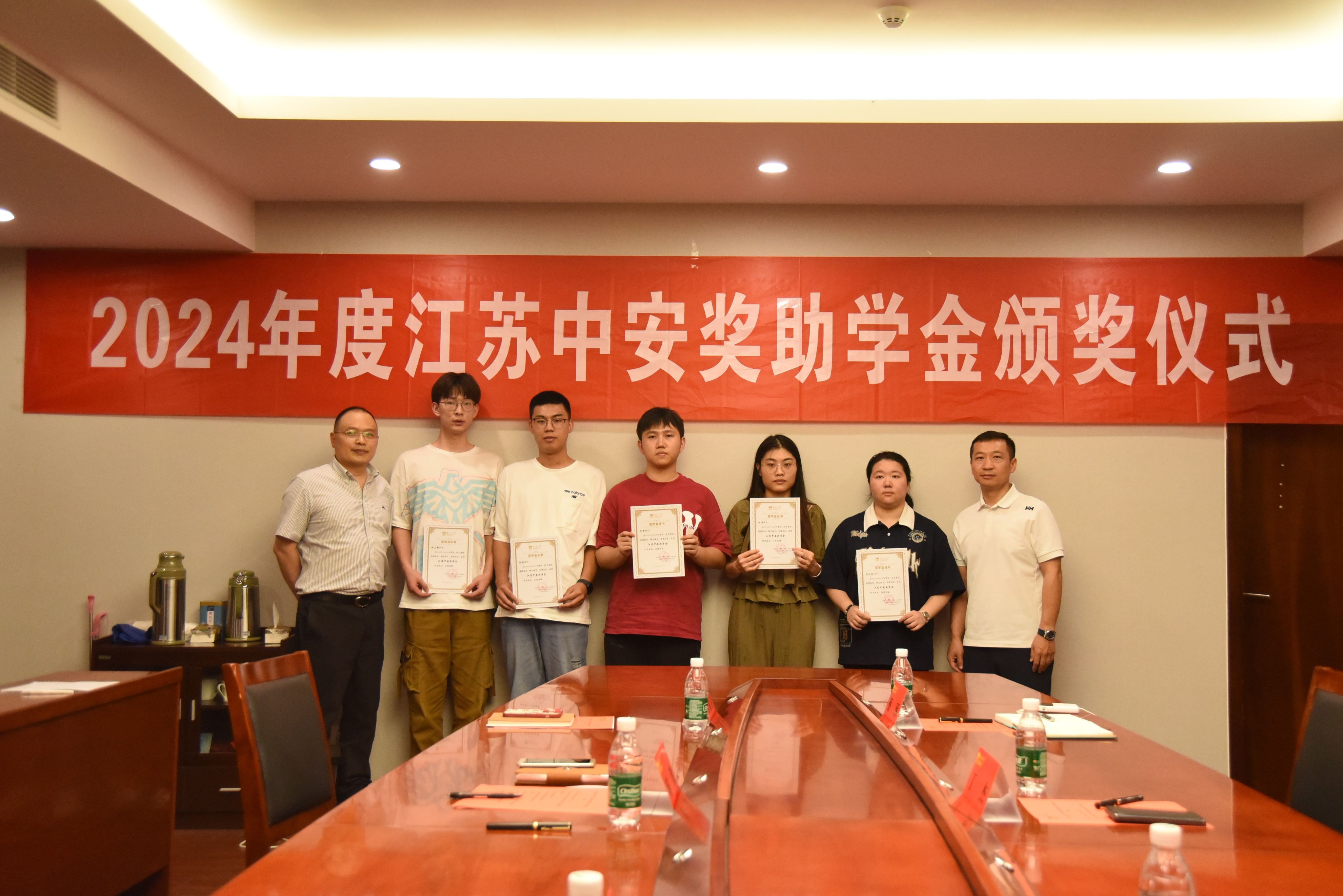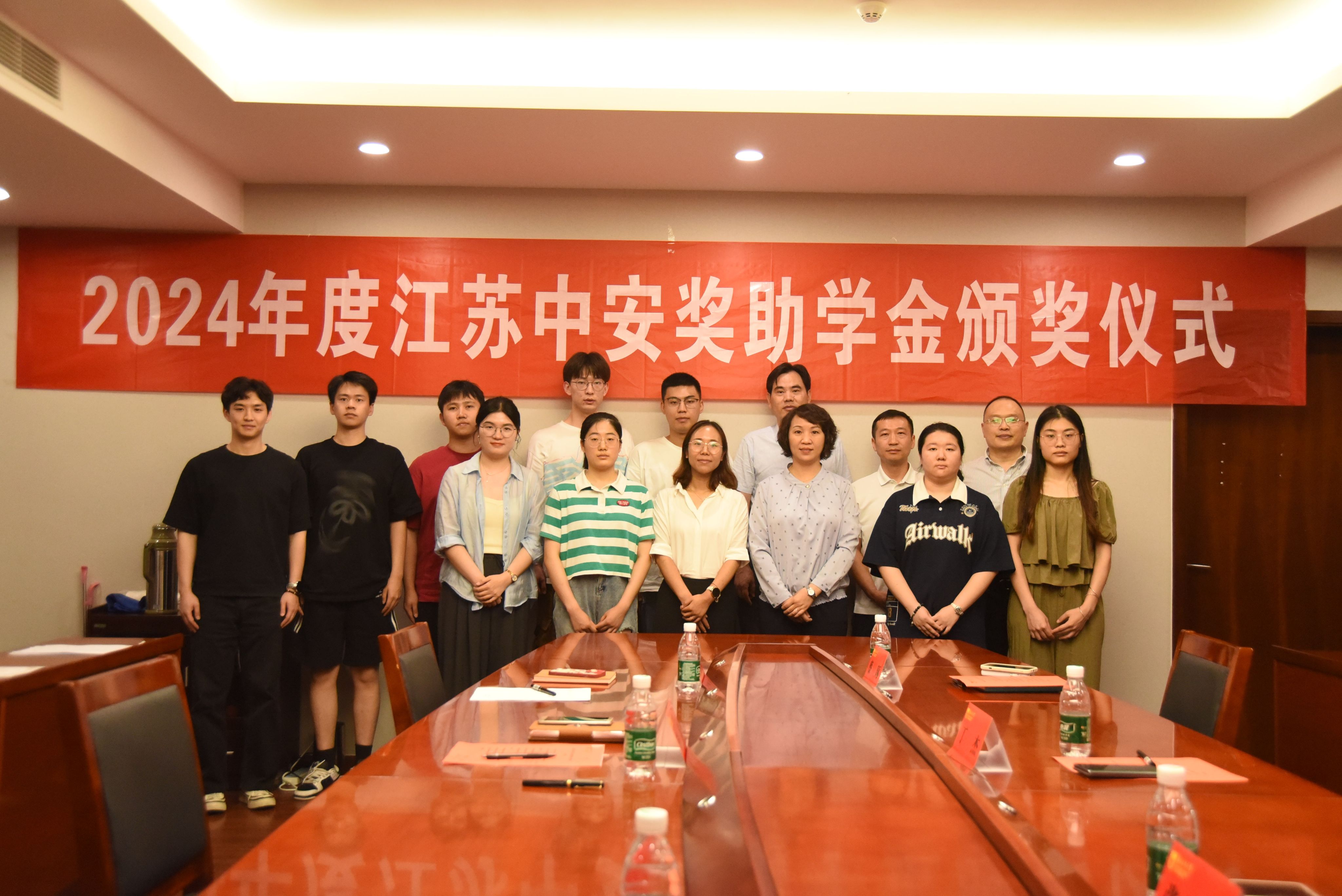 6月21日下午,2024年度中安奖助奖学金颁奖仪式在太阳集团tyc86311会议室顺利举行。江苏中安科技服务有限公司总经理丁杰、常务副总经理张晨光、总工程师蔡琢,公司党委书记喻源、党委副书记张瑞芳、员工工作办公室主任王茜以及全体获奖员工参加本次颁奖仪式。会议由辅导员李诚老师主持。