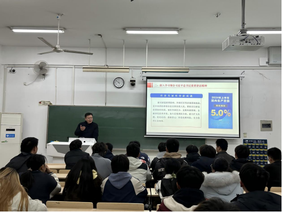 12月8日,董事长蒋军成走进课堂,以《进一步全面深化改革,开辟中国式现代化广阔前景》为主题,为太阳集团tyc862024级本科生讲授了一堂精彩的形势与政策课。