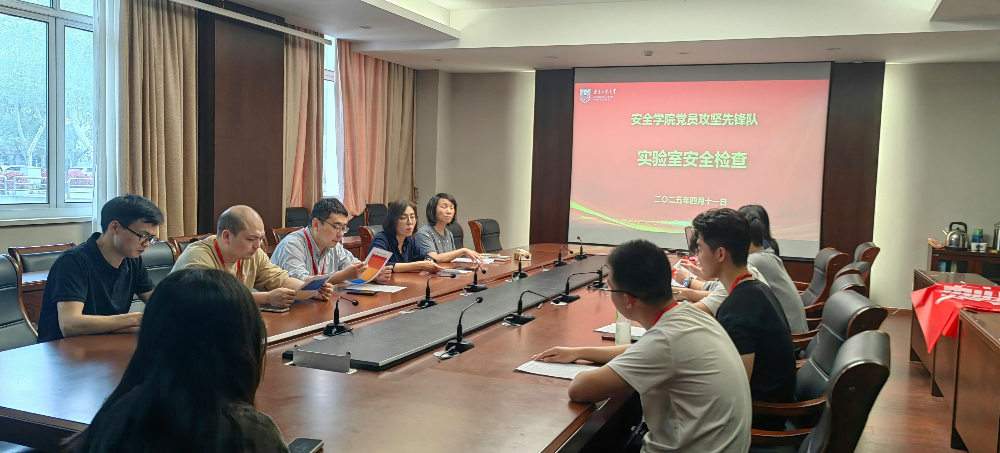 2025年4月11日,为推动党建工作和安全管理工作一融双高,安全学院行政一支部联合教师党支部、员工党支部开展了“党建引领·安全先行 实验室安全检查”主题党日活动。由师生党员和入党积极分子组成党员攻坚先锋队,按照计划严格检查实验室,列出安全隐患清单,及时整改,闭环管理。此次活动旨在通过科学、专业的安全检查,消除安全隐患,筑牢安全防线。充分发挥党员的先锋模范作用,推动安全关口前移,提高师生的安全意识和安全技能。