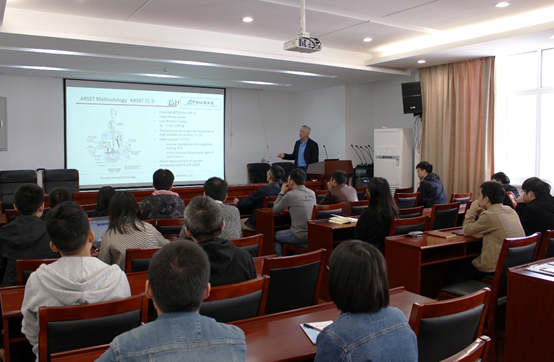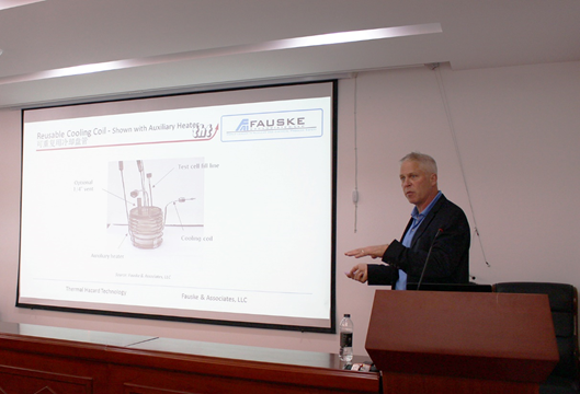 Dr. Jim Burelbach毕业于西北大学化学工程博士学位,任职于Fauske&Associates,LLC, ,在运用VSP2和ARSST绝热热量计开展失控化学反应及压力泄放方面工作具有丰富的经验。Dr. Jim Burelbach以“Emergency Relief Sizing for Runaway Chemical Reactions: A Simple Approach Using VSP2 or ARSST Data”为题,从化学反应失控普遍机理及压力泄放基础知识引入培训内容,主要对VSP2 (Vent Sizing Package 2)和ARSST (Advanced Reactive System Screening Tool) 两种绝热量热仪进行详细的介绍,阐述其结构、工作原理和多重功能的使用及适用情形。并以此分别对不同化学反应体系的典型试验研究案例进行举例分析,帮助在场师生更好的理解VSP2和ARSST测量仪器在科研和工业环境中的实际应用。会上,Dr. Jim Burelbach还介绍了用于确定流动状态(蒸汽,搅动,气泡或均质流)的两相流和实验技术,以及相关的延展性知识,整个会议内容充实,紧凑有序。最后,参会老师和同学积极与专家进行交流互动,探讨氛围浓厚。