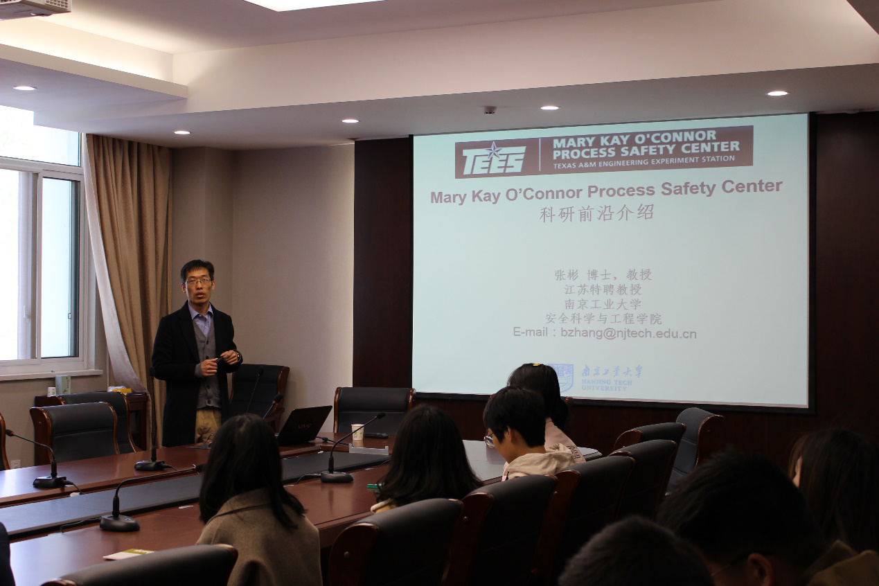 4月15日上午9:30,由安全学院特聘教授张彬老师主讲的《Mary Kay O’Connor Process Safety Center科研前沿介绍》专题讲座在江浦校区安全学科楼111会议室顺利开展。