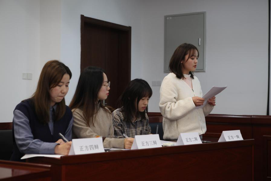 比赛围绕“骑驴找马的爱情可不可以找到真爱”、“做人该不该省钱”、“男生、女生谁更需要关怀”、“志愿者热情和能力谁更重要”四个辩题展开。双方辩手都做了充足的准备,开篇立论即论点明晰,论据有力,双方辩手你来我往,在遵守比赛规则的情况下相互制衡,继正反双方慷慨激昂的立论陈词之后,比赛进入攻辩与自由辩论环节,双方针锋相对、步步紧逼,时而言辞犀利、咄咄逼人,时而幽默诙谐、讽刺调侃,双方毫不示弱。在总结陈词阶段,双方思路清晰,陈词巧妙,给观众留下了深刻印象。接着评委代表为双方做辩论点评,指出了双方辩手在各个辩论环节中的优缺点以及注意事项,希望选手们再接再厉,在思辨中收获知识、提高认识。