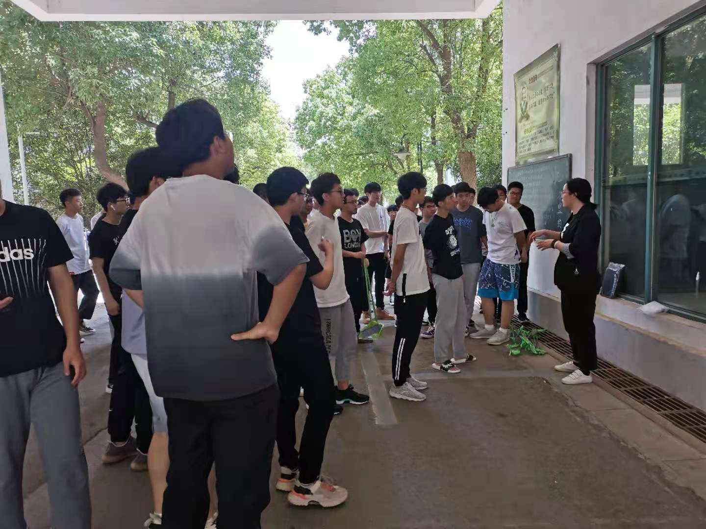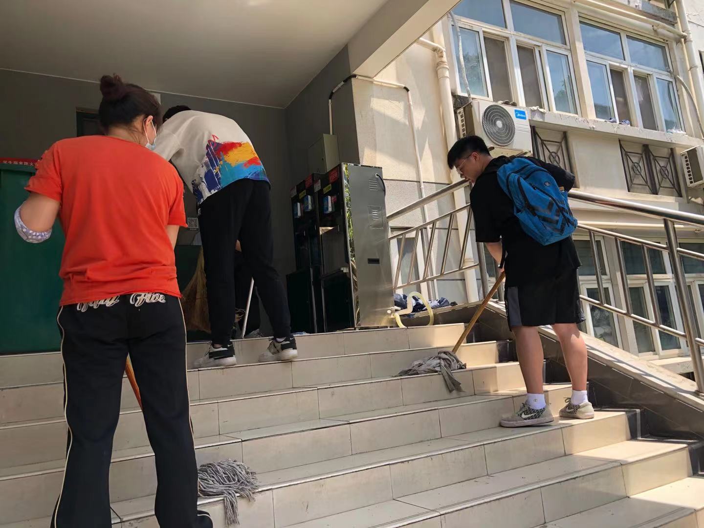 劳动开始前,员工公寓服务中心工作人员向大家详细讲解了劳动要领和注意事项,进行人员分组和劳动分工。随后,在保洁阿姨的指导下,同学们分批对宿舍楼道内部及楼栋外环境进行整理。清理过道杂物、扫地、拖地、抹扶手、撕除小广告、耙枯叶、捡烟头......经过近一小时的打扫,象山苑18栋被清理得焕然一新。同学们虽满头大汗,但看到劳动成果都深感自豪。