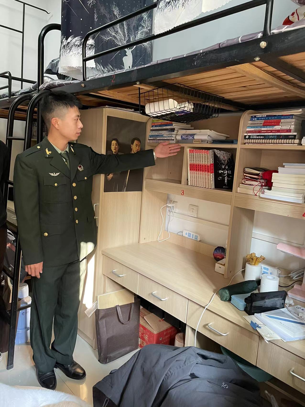 11月27日,安全学院邀请退伍老员工、“四有”优秀士兵方晓宇进新生宿舍进行内务卫生整理指导,全体21级生活委员和宿舍长代表参加活动。