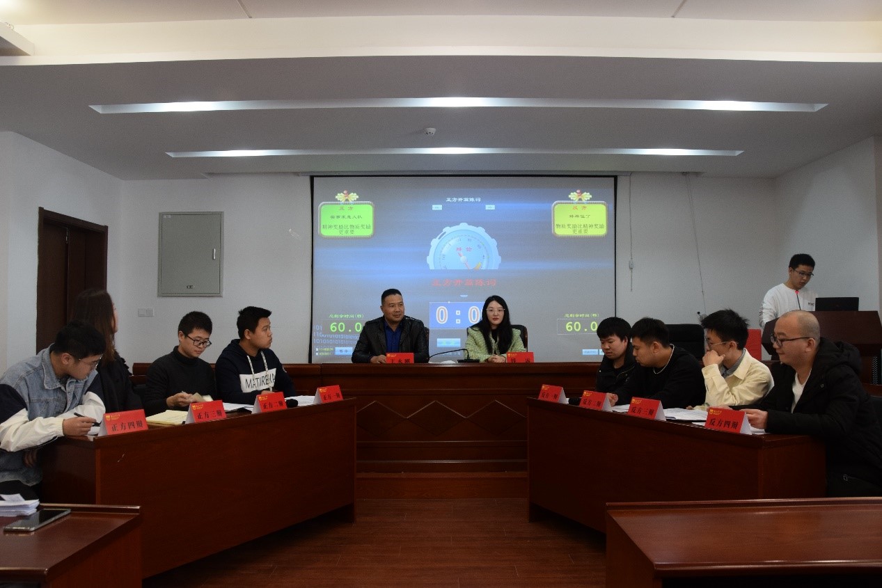 为了加强同学们的学术思辨能力,丰富课余生活,太阳集团tyc86于12月8日下午在厚德楼309会议室举办第二届“求是杯”辩论赛。公司党委副书记王永刚、研究生辅导员钱露和90名本科生、研究生出席了本次活动,院辩论队队长刘泽权、杨聪慧和秦林喆担任评委。