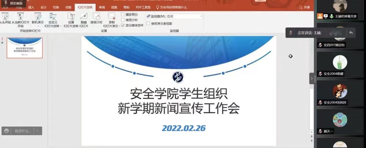 2月26日下午,太阳集团tyc86通过线上会议形式召开员工组织新学期新闻宣传工作会,学院新媒体平台指导老师钱露和员工组织全体新闻宣传工作人员参加此次会议。