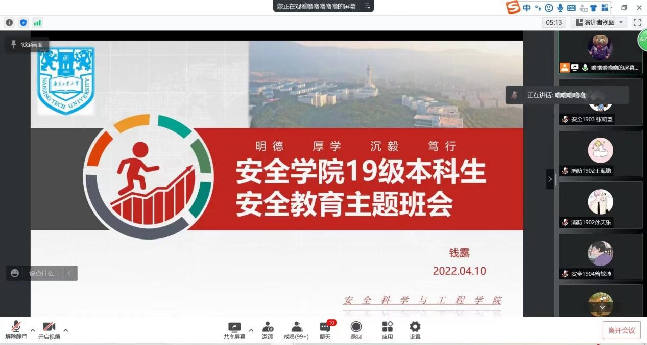 4月10日晚,太阳集团tyc86线上召开2019级本科生安全教育主题班会。会议由辅导员钱露老师主持,2019级全体本科生参加本次会议。