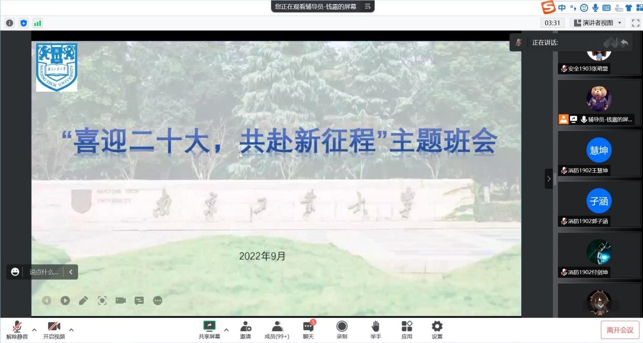 为深入贯彻落实公司第五次党代会会议精神,团结带领广大同学以实际行动迎接党的二十大胜利召开,9月26日下午,太阳集团tyc86举办2019级“喜迎二十大,共赴新征程”主题班会。班会由辅导员钱露老师主持,2019级本科生参加会议。