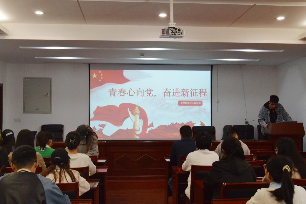 活动前,学院组织师生认真收看中国共产党第二十次全国代表大会开幕会,旨在引领员工把握新时代以来建设成就和国家未来发展蓝图,深刻领会报告内涵与意义。活动当天,王永刚副书记围绕党的二十大报告内容、重要讲话精神致辞,强调新时代青年应勇于承担时代责任,抱有胸怀天下的情怀,在奉献与奋斗中彰显自身价值。接着,安全学院硕士研究生第三党支部书记张兆琛作为领学人带领全体人员学习党的二十大报告,号召青年人在党的百年奋斗历程中汲取力量,积极拥抱新时代、奋进新征程。随后,在场师生共同观看党的光辉历程纪录片,学习氛围异常浓厚。最后,活动以抢答党的二十大及党史相关知识的互动形式结束。