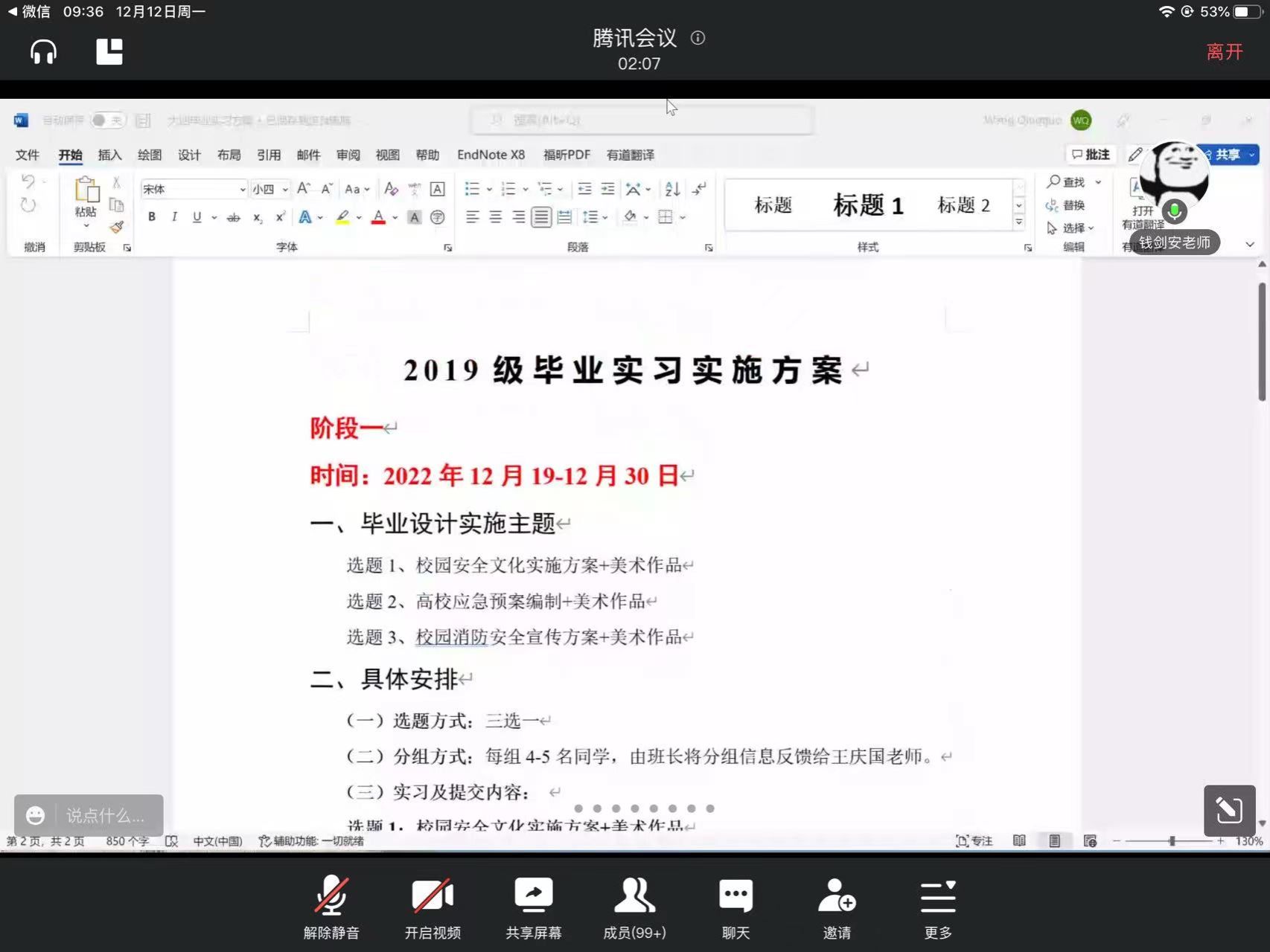 12月12日上午,太阳集团tyc86于线上举办2019级毕业班座谈会。安全工程系主任钱剑安、副主任王庆国,消防工程系副主任王华,毕业班辅导员钱露以及2019级本科生参加会议,座谈会由毕业班辅导员钱露老师主持。