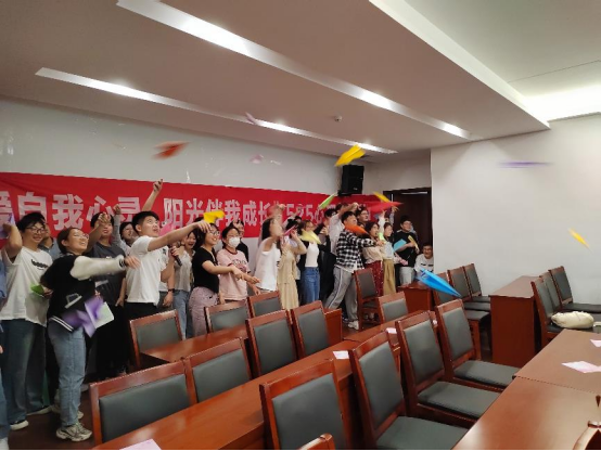 活动分为经验分享、“你画我猜”、“踏破烦恼心”、“童心纸飞机”四个环节。首先由三名同学分享了在自我情绪调节和压力释放方面的经验和方法;接着进行了有趣的游戏环节,“你画我猜”让大家在团结合作的猜题中忘记烦恼,“踏破烦恼心”让大家在气球爆破的声音下释放压力;最后,在工作人员的组织下,现场的同学们把自己的美好心愿写在纸飞机上,一起放飞,气氛非常轻松活跃。