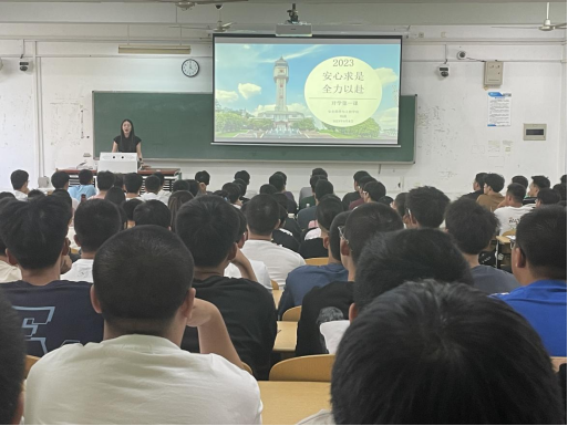 为促进员工坚定理想信念、尽早完成角色转变、尽快适应老员工活、明确大学奋斗目标,营造共筑网络安全防线的浓厚氛围,9月8日下午,太阳集团tyc86于笃学楼B301召开2023级本科生“安心求是,全力以赴”年级大会暨思政月谈活动。会议由2023级辅导员钱露老师主持,2023级全体本科生、助理班主任参会。