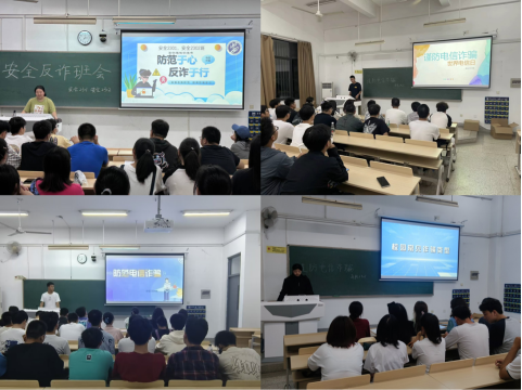 会上,各班助理班主任领学习近平总书记关于打击治理电信网络诈骗犯罪工作的重要指示精神,各班负责人领学防范电信网络诈骗资料汇编,向同学们介绍了兼职刷单类、虚拟投资理财类、贷款类、冒充客服退款类、冒充公检法类等常见电信网络诈骗手段,通过剖析身边案例、以案说法的形式普及了防范措施及应对措施。随后,全体新生观看了反诈教育短片,并以电影《孤注一掷》为切入点,围绕防范电信网络诈骗展开了激烈的讨论。最后,各班负责人组织全体新生下载“国家反诈中心”APP,全员开通了“骚扰电话拦截服务”,进一步提高全体新生识诈、反诈意识。
