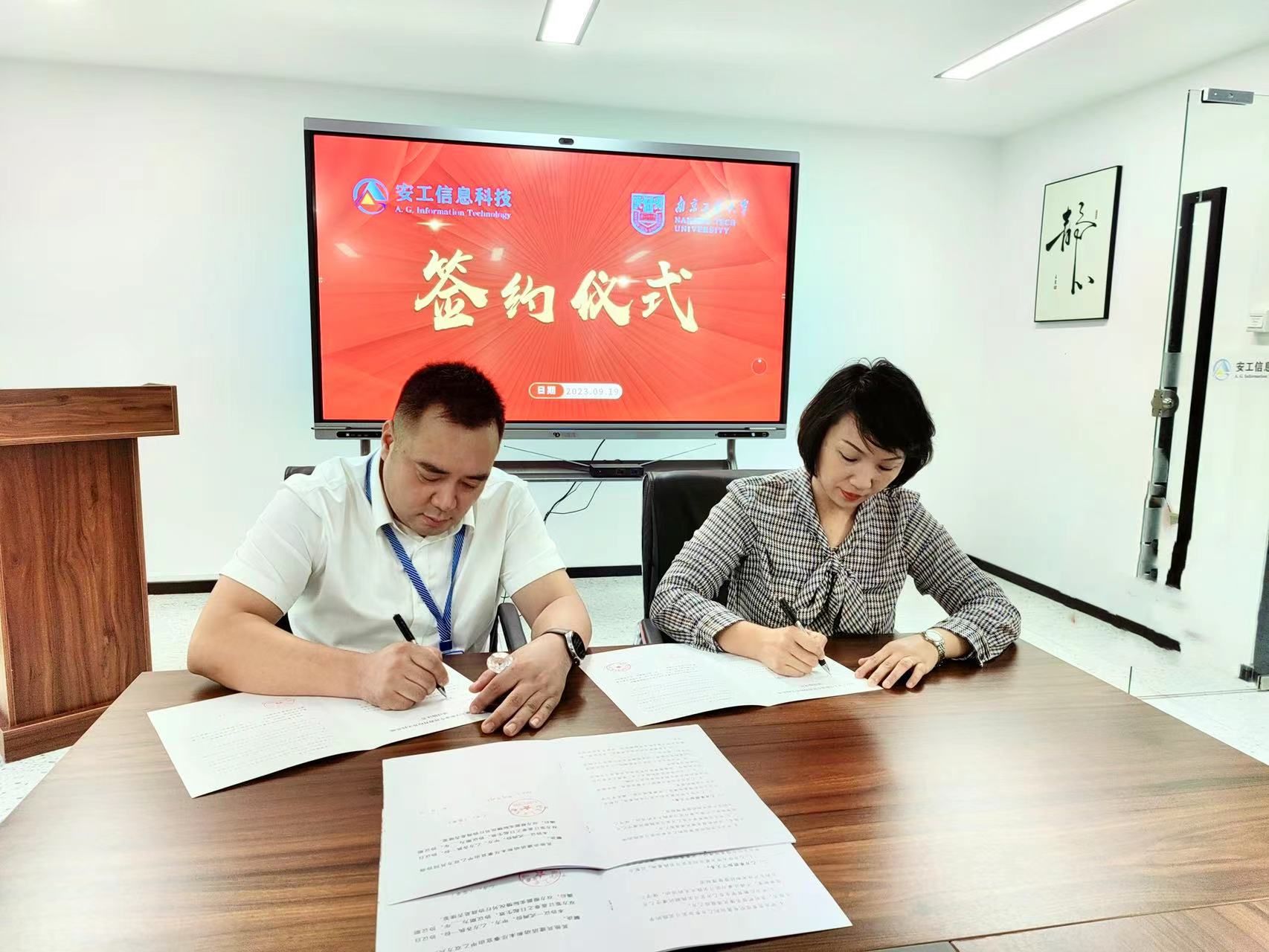 安全公司党委副书记张瑞芳介绍了安全学院的办学历史、专业设置、实训实践、人才培养、考研就业等情况,希望校企双方发挥各自优势,精准对接、深化合作,构建产学研协作新模式,构筑产教融合新格局。双方围绕校企合作模式、合作项目内容、产学研落地、人才培养、实习实训、毕业生就业等方面进行了深入交流,就如何更好开展校企合作进一步理清了思路,明确了合作方向。最后,双方共同签署了《职业生涯教育校外实践基地协议书》、《就业创业实习实践基地建设协议书》,并举行揭牌仪式。