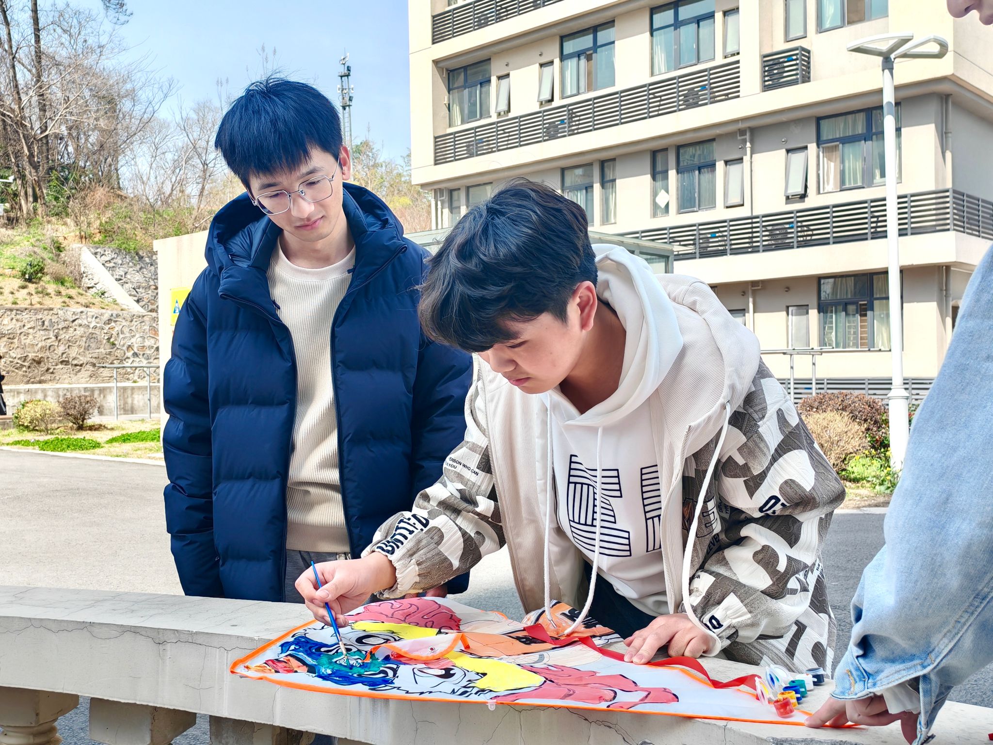 活动伊始,学院心协工作人员在发放水粉颜料等手工材料的同时,以问答形式,向同学们普及了纸鸢的来历及绘画制作纸鸢的步骤。随后,同学们迫不及待地拿起画笔绘制风筝图案。蘸料、调色、填色......原本单调苍白的风筝变得多姿多彩,图案活灵活现。最后,在工作人员的指引下,同学们将自制风筝有序放飞。