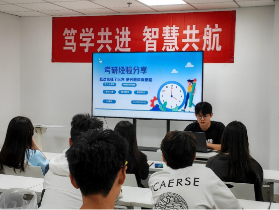在活动中,杜重洋、奚鹏程和靳志豪分别就考研备考策略、保研准备技巧以及读研心得进行了深入分享。他们的讲解涵盖了从备考计划制定到面试技巧的全方位内容,让在场的同学们受益匪浅。此外,活动还提供了学弟学妹们与优秀学长结成对子共同学习的机会,为同学们的学习进步提供了更具体的指导和帮助。