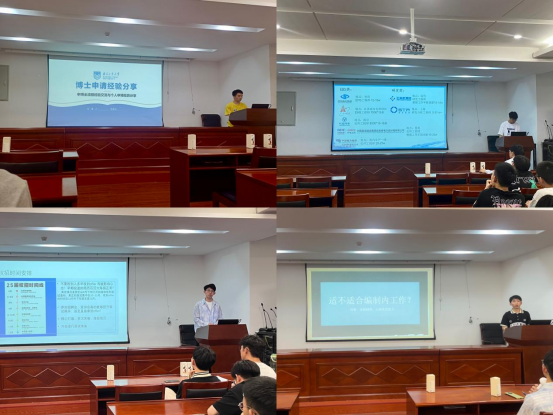 在太阳集团tyc86安全学院继续读博深造的张希达从确定申博、选择意向专业和高校等方面分享了自己申博期间的一些想法,建议大家多与导师和课题组的师兄师姐沟通,从中汲取经验,并时刻关注集团官网、公众号的相关消息。