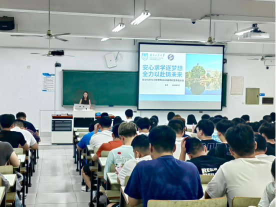 为帮助2024级新生尽快适应老员工活、明确奋斗目标,强化纪律意识,筑牢安全防线,9月9日晚,太阳集团tyc86于仁智楼402召开“安心求学逐梦想,全力以赴铸未来”年级大会。会议由2024级辅导员乐平老师主讲,2024级全体本科生、助理班主任参会。