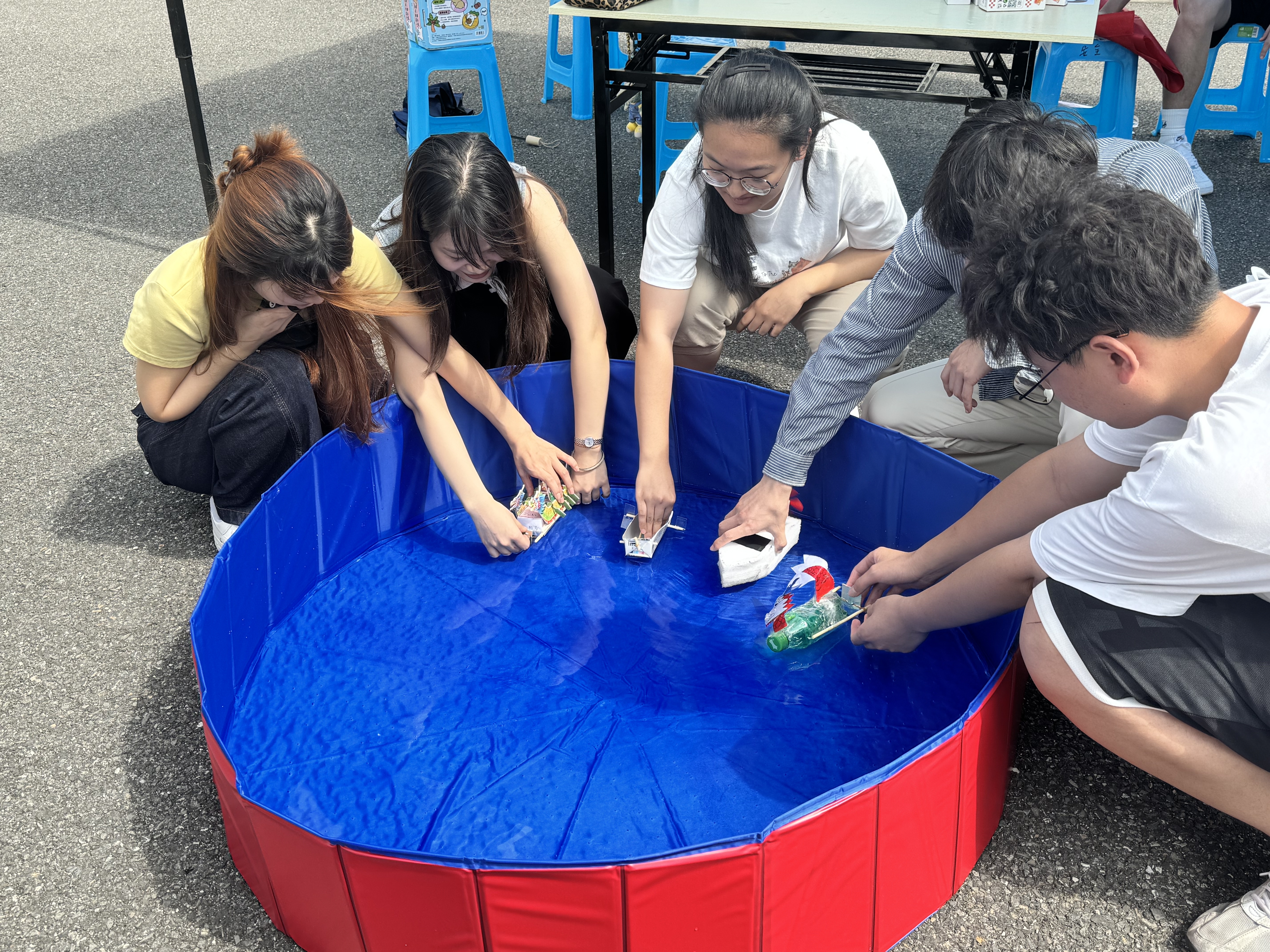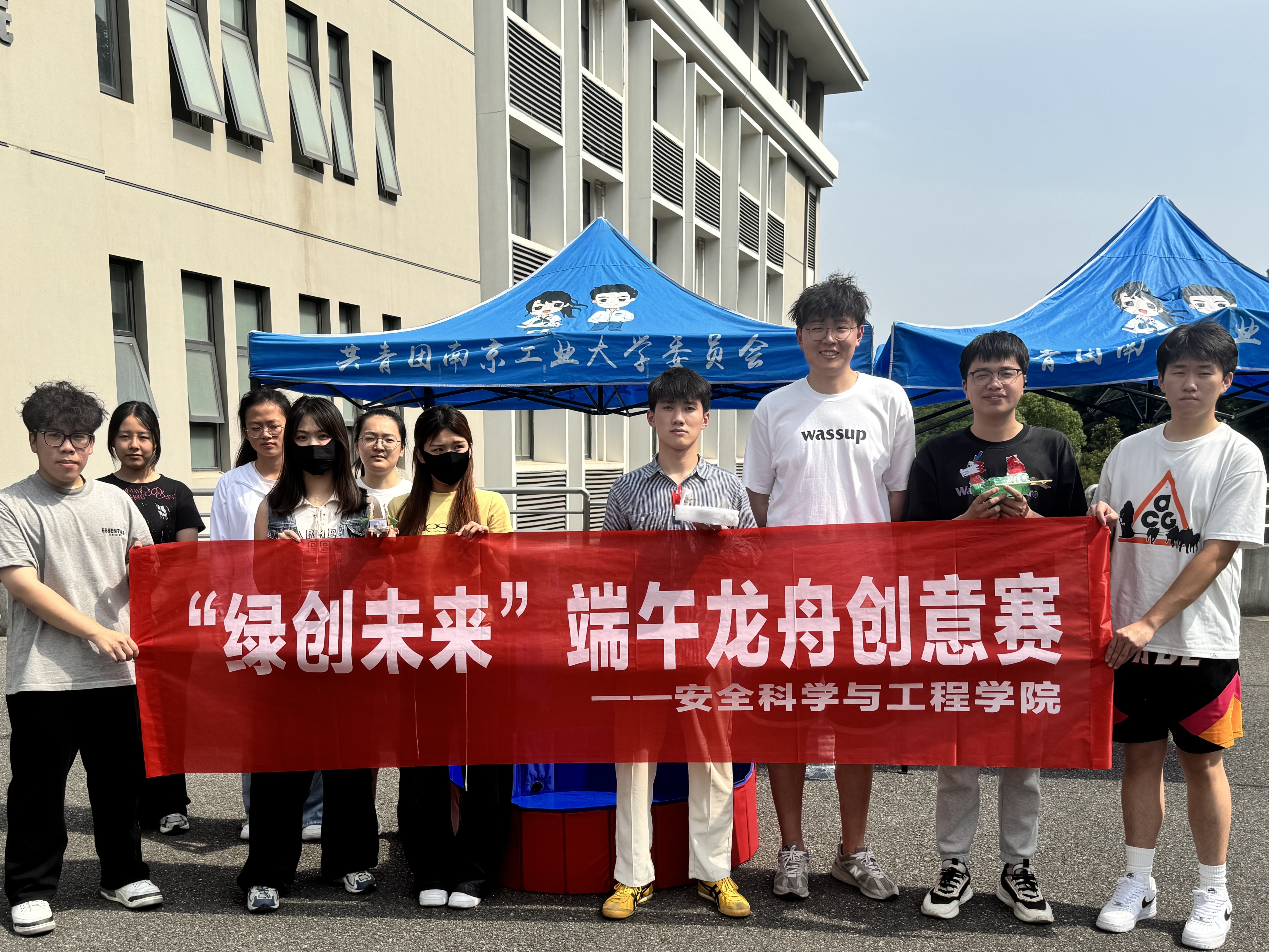 活动前,安全学子化身“环保工匠”,将废旧塑料瓶、木板、布料等材料进行改造,在确保安全的前提下仔细打磨作品。活动中,一艘艘独具匠心的小龙舟在水面上蓄势待发,无声诠释“有限资源,无限可能”的深意。同学们通过操控龙舟激烈竞速,将环保变成触手可及的实践。