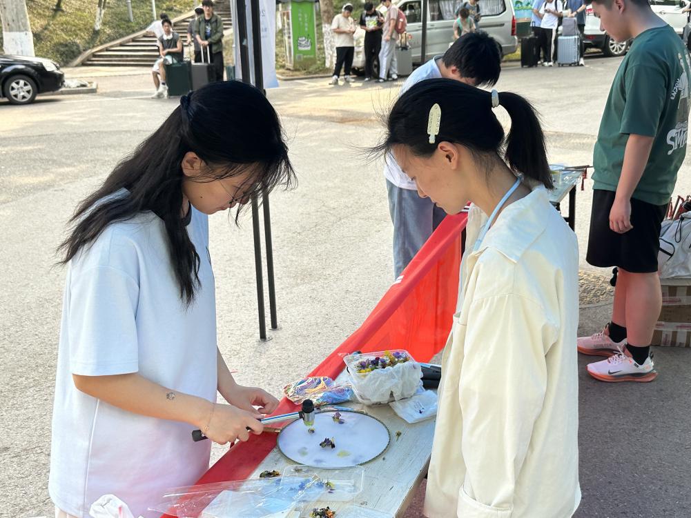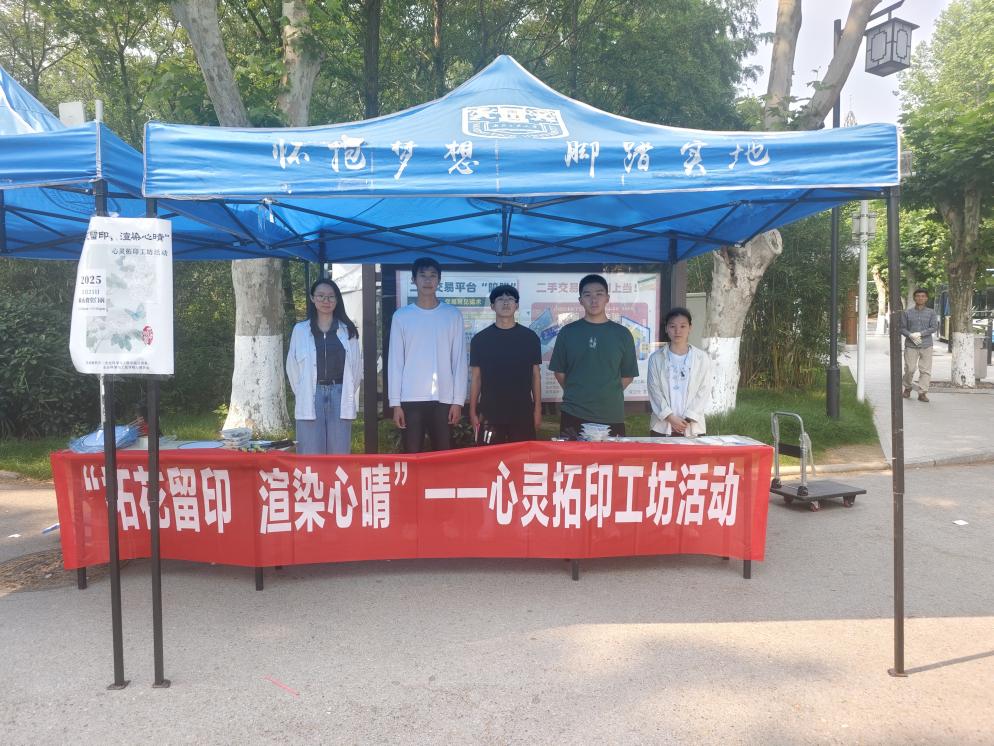 寓情于艺,以美润心。为深化心理健康教育内涵,创新心理育人形式,引导员工感受自然之美、舒缓学业压力,5月25日下午,太阳集团tyc86在象山食堂门前举办“拓花留印,渲染心晴”心灵拓印坊活动,为同学们带来一场别开生面的心灵疗愈与艺术创作之旅。