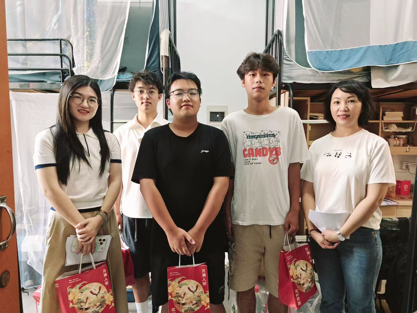 公司为同学们准备的慰问礼包含寓意温馨团圆的月饼、各式精美零食以及匠心定制的礼袋。流心奶香四溢,交织金黄馅沙,宛如秋日的醇厚与温情。同学们在品尝的过程中纷纷表示感受到“此心安处是吾乡”的温暖。
